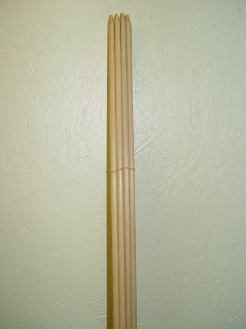These Shafts are not parallel shafts that have been tapered by hand, we put a square stick in the machine and out comes a tapered shaft. This is the finest tapered shaft on the market today. These arrows are hand spined within 5 pounds, hand straightened, and grain weighed within 10 grains, they are tapered 9" and already have been nock tapered. A shaft tapered on the nock end allows the arrow to pass through paradox with less lateral movement on the point end. This allows the arrow to recover more quickly. The tapered nock end also moves the center of gravity forward yielding a better flight characteristic. The taper also reduces pressure on the bow from the nock end of the arrow greatly reducing feather wear and tear.